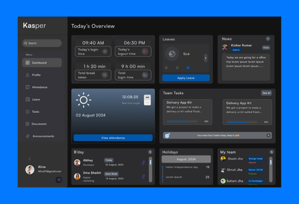 - Smart Leave Management – Easy leave requests, approvals, and balance tracking